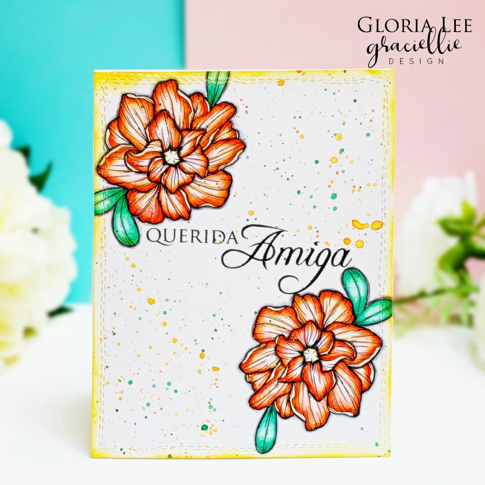 Today I want to share with you a card using Querida Amiga digital stamp bundle from Graciellie design.